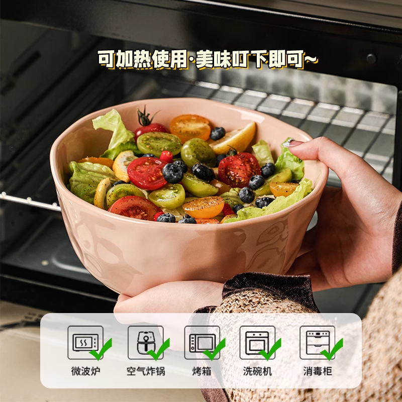 烤箱专用陶瓷烤碗家用带手柄碗水果沙拉碗卡通学生宿舍单柄泡面碗