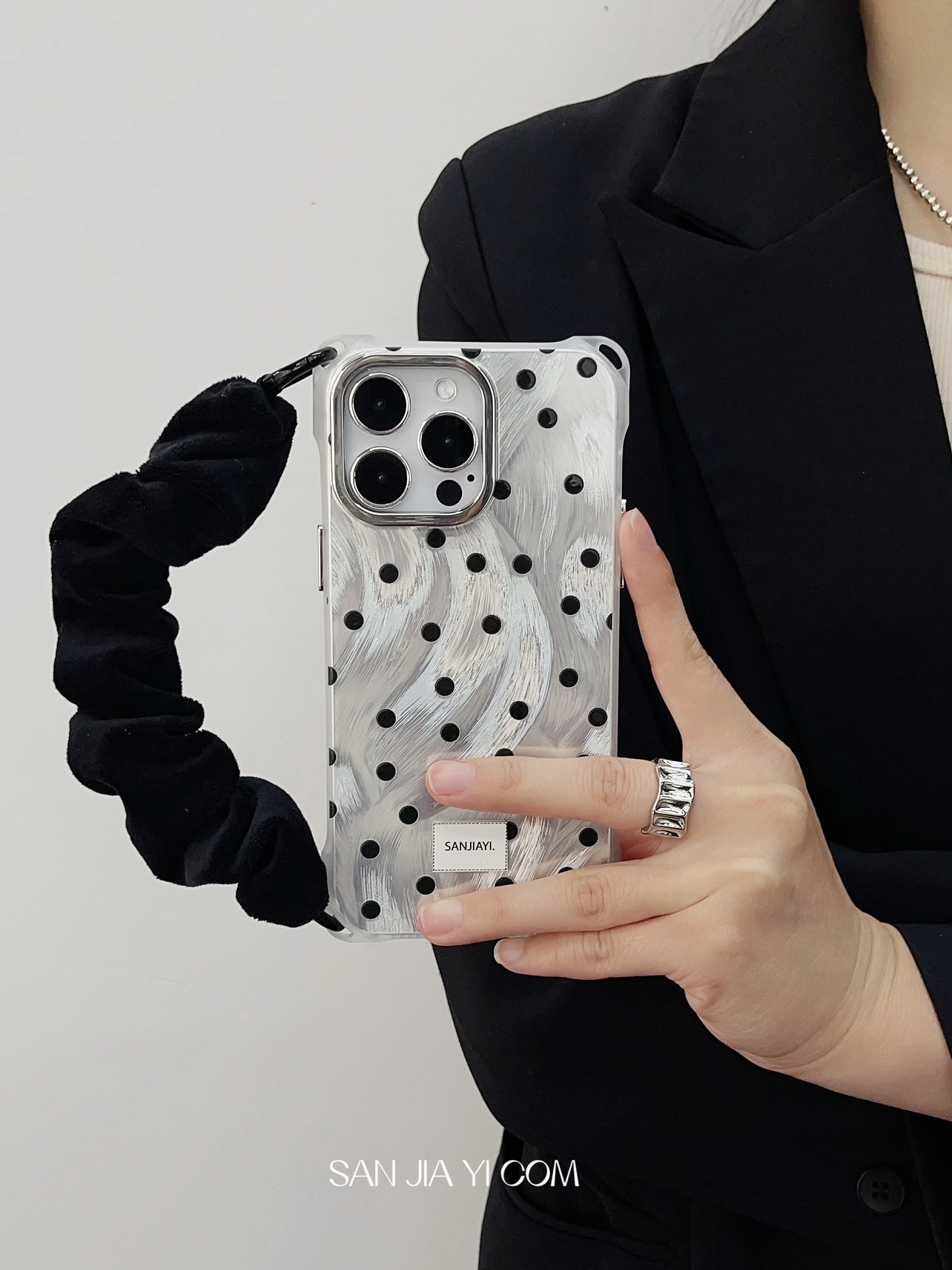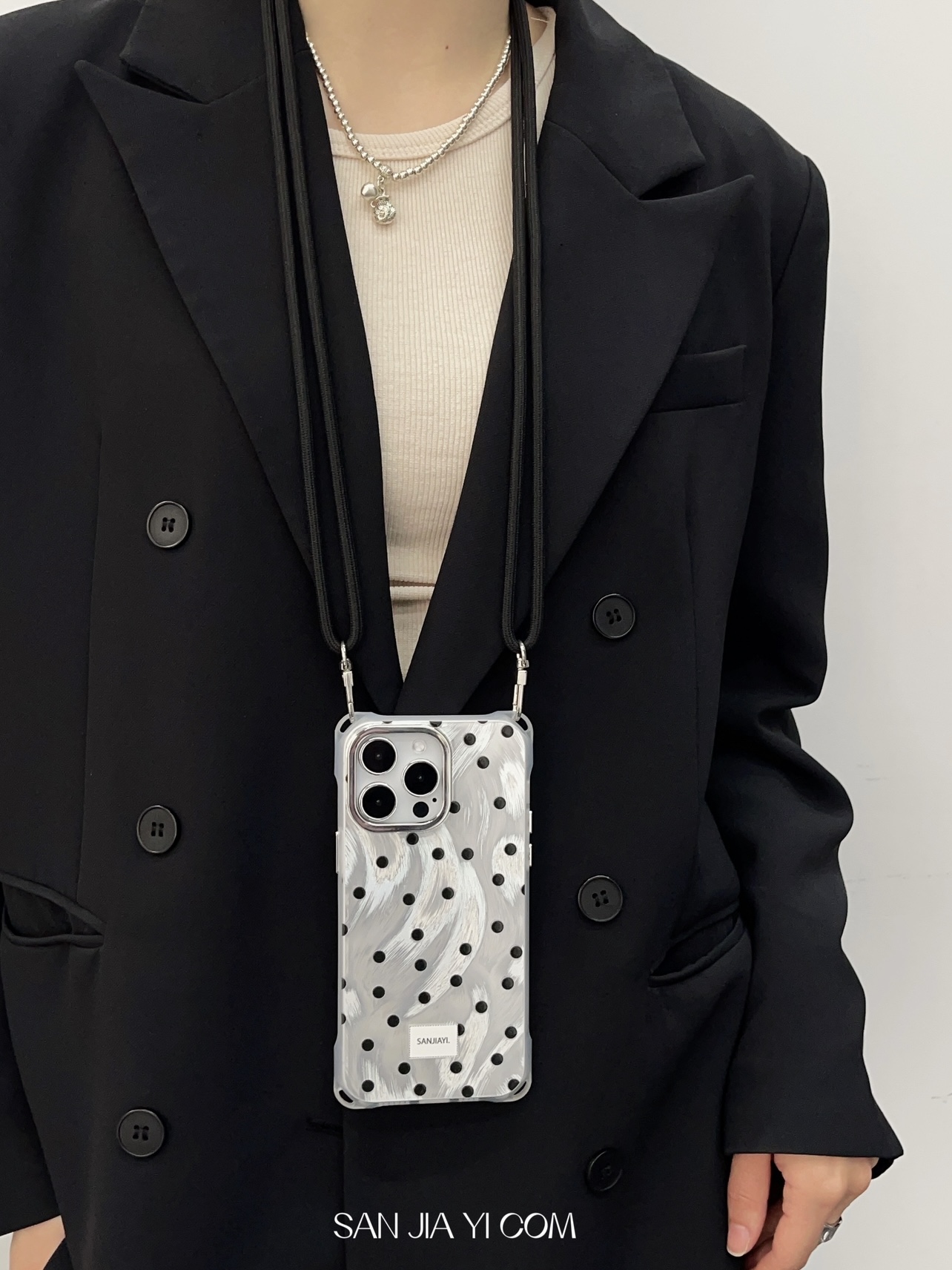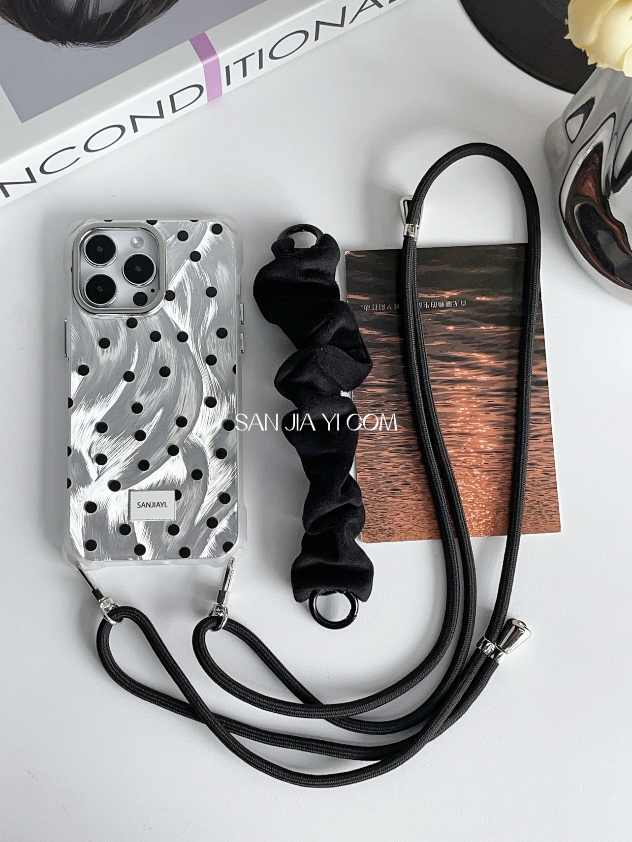 日韩可单肩斜挎百搭波点手机壳16Promax适用手提手腕苹果iPhone14/13Pro四角开孔华为mate60pro/70小米15挂绳