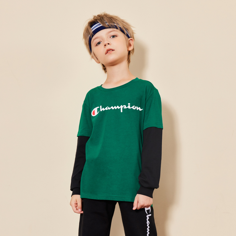 Champion冠军男女大小童25秋季新款纯棉舒适假两件运动长袖T恤潮