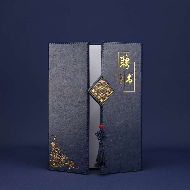创意a4三折仿皮高档荣誉证书中国风聘书外壳空白封面定制可印logo毕业结业证书抗疫表彰优秀员工奖状收藏证书