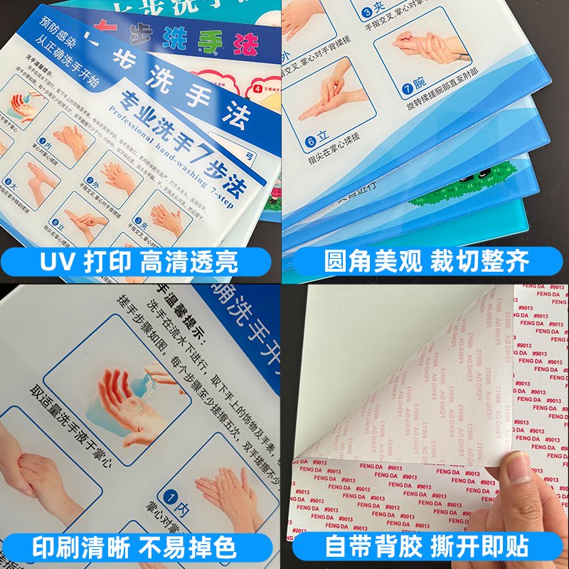 七步洗手法亚克力墙贴纸医院诊所七部法步骤图贴纸幼儿园儿童学校防水洗手池标识牌卫生口腔提示牌定标识牌