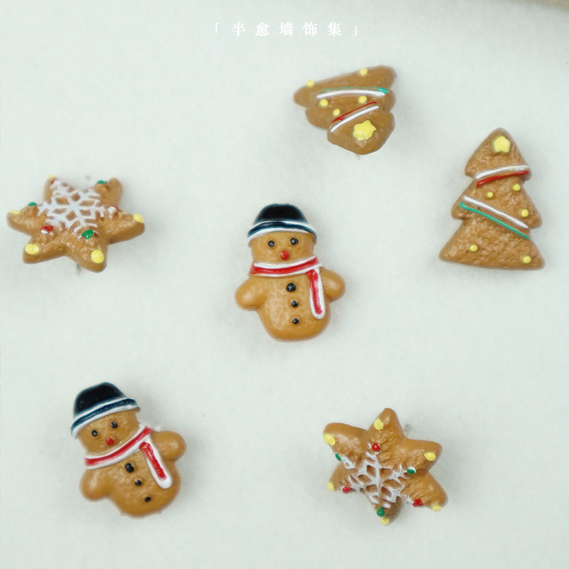 6个装圣诞节姜饼人雪人可爱创意图钉子软木板照片墙装饰毛毡按钉