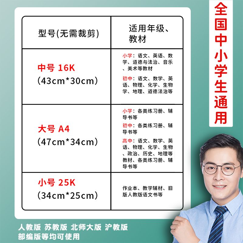 包书皮自粘透明磨砂书皮纸小学生专用一年级二三年上册中号16k课本2025新款书本封皮保护套书套书膜全套贴纸