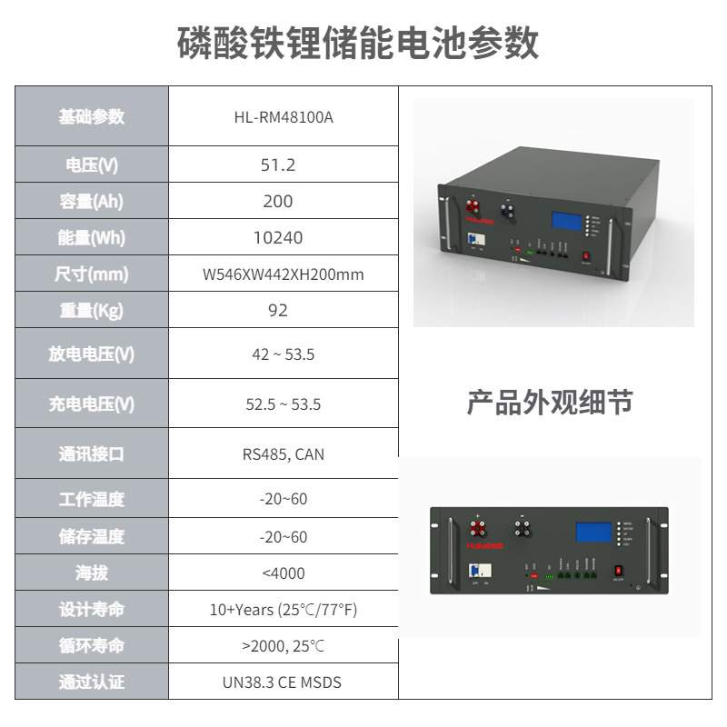 51.2V100Ah太阳能蓄电池磷酸铁锂储能电池UPS应急电源工业供电