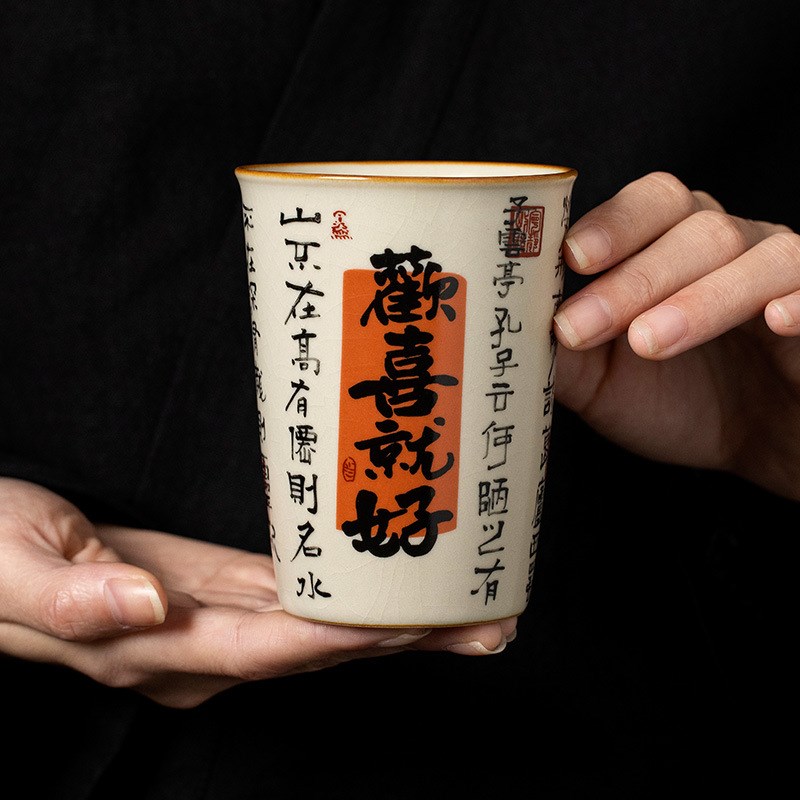 汝窑欢喜就好可乐杯陶瓷功夫茶杯开片可养主人杯大容量茶盏