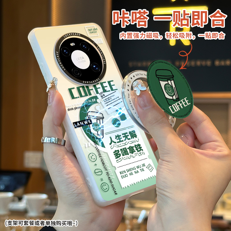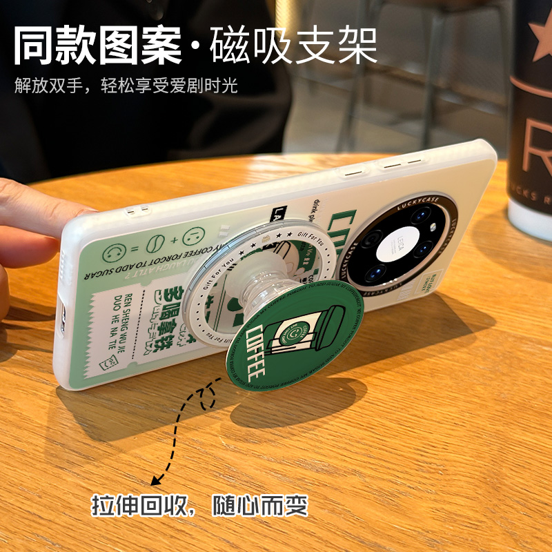 SHEHENG × 多喝拿铁适用于华为mate70pro手机壳新款mate40pro磁吸支架全包mate50保护套30防摔p60pro