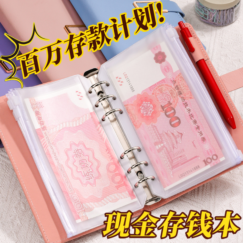 现金存钱本2025新款活页理财防水百元收藏册10万元网红现金多功能大容量人民币儿童存钱袋带密码锁存钱夹钱册