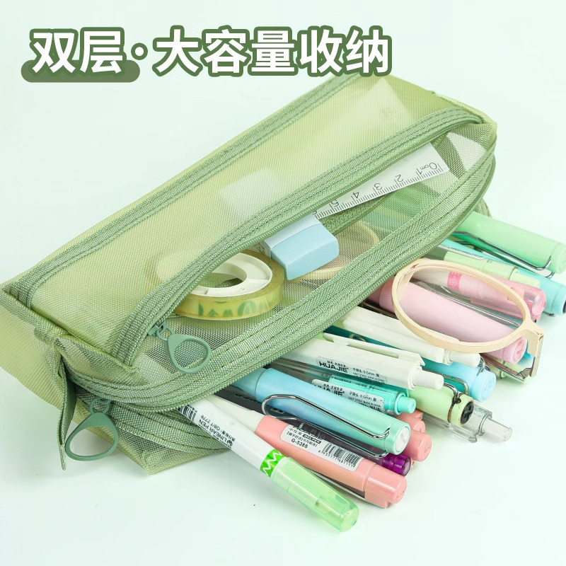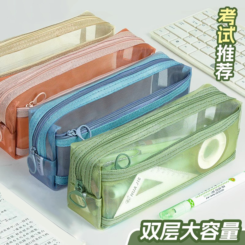 网纱笔袋双层大容量透明文具袋学生考试专用铅笔袋高颜值ins风初中女生文具盒2025新款简约收纳袋男孩款