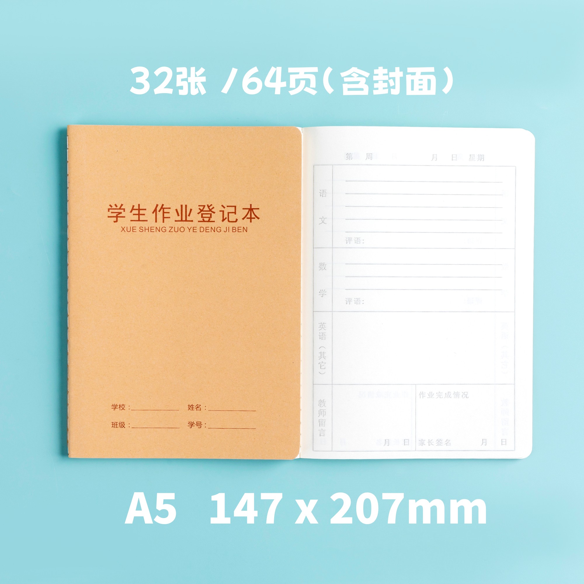 伟盛作业登记本小学生专用记作业本A5牛皮封面一年级二三四五年级记录抄作业本托管班家庭家校联系本