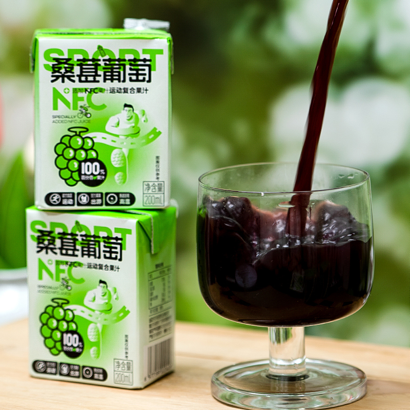 冠牧优醇桑葚葡萄100%复合果汁饮料添加NFC果汁200ml*6盒装0脂肪
