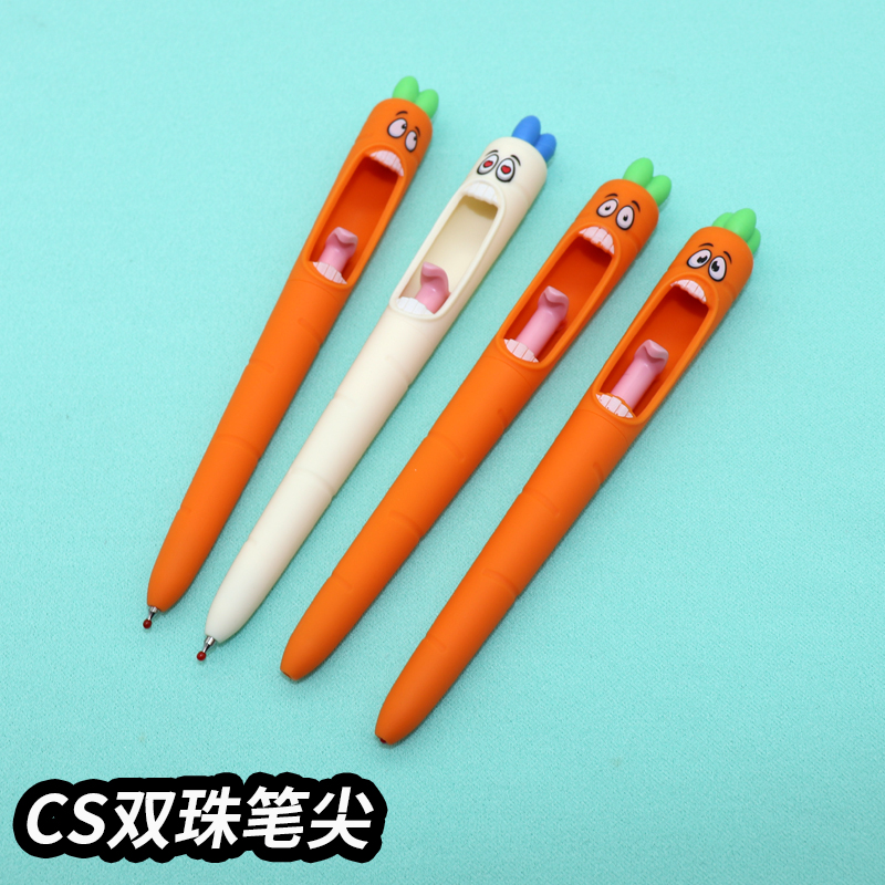 恶搞笑迷糊萝卜笔舌头尖叫按动笔上课可玩的CS双珠中性笔黑卡通可