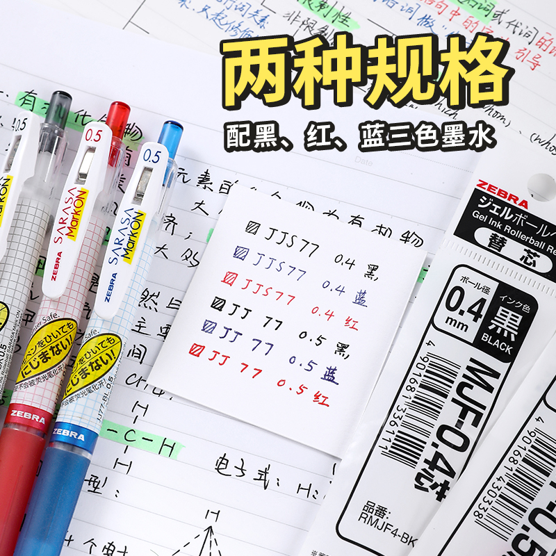 日本斑马不晕染中性笔JJ77速干中性笔SARASA markon笔芯0.5mm按动式考试黑笔格子水笔zebra刷题笔高颜值红蓝