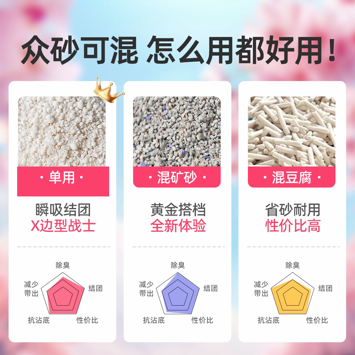 豆腐猫砂三合一除臭吸水混合猫砂高效结团膨润土科学配比猫砂低尘