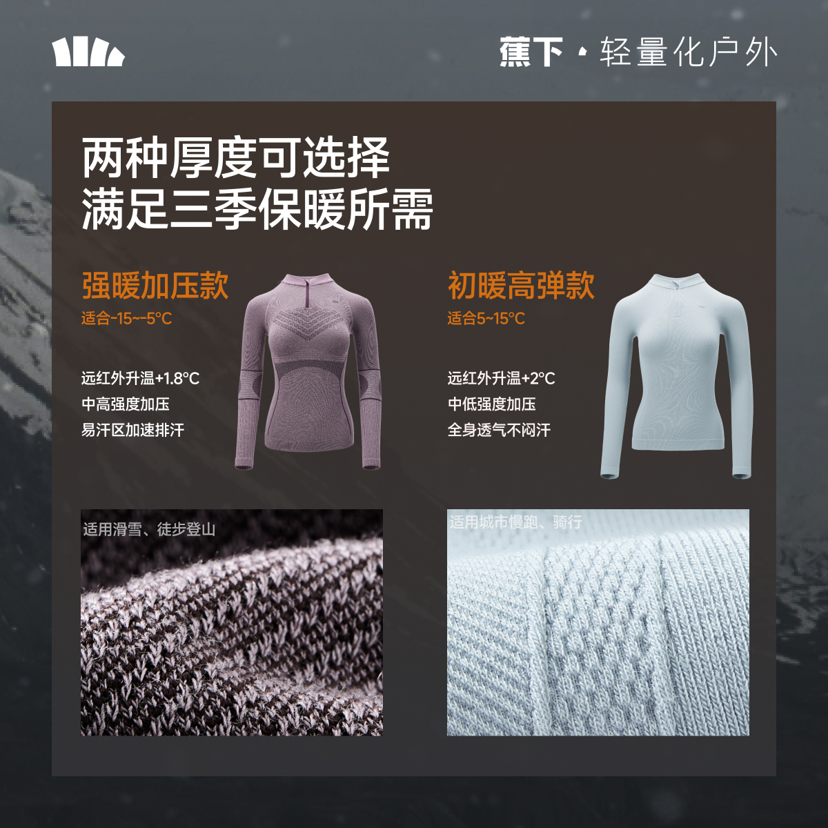 蕉下运动保暖内衣登山徒步男女滑雪速干衣排汗压缩衣功能情侣套装