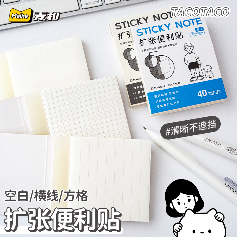 TACOTACO扩张便利贴透明不遮挡可撕任意贴初中生专用有粘性便签贴纸扩张贴小学生记笔记贴错题订正办公用