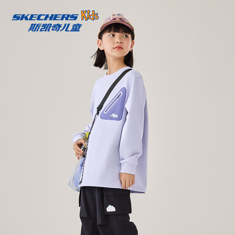 斯凯奇2025秋季男女同款有颜有料蓬松柔软舒适运动针织长袖恤衫