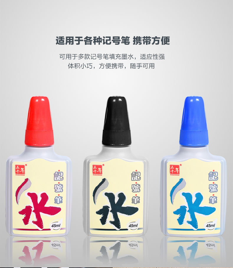 五千年记号/白板笔油/水性墨水黑红蓝色单瓶装墨水滴管式加墨0120