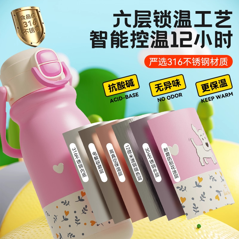 新款母婴级316L不锈钢保温杯高颜值儿童小学生上学专用水杯吸管杯