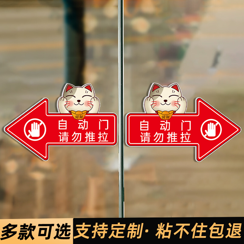 招财猫自动门提示贴玻璃感应门请勿触摸请勿手动请刷卡防撞温馨提示推拉门贴自粘电动门左移右移开门指示箭头