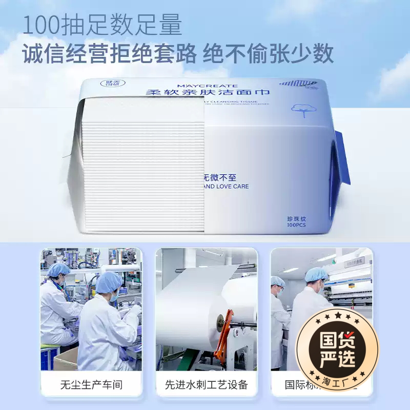 全棉时代洗脸巾一次性纯棉柔巾干湿两用悬挂式M码美容擦脸巾