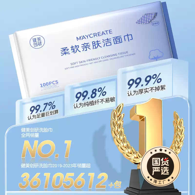 3包装|健美创研洗脸巾一次性擦脸不掉毛纯棉洗面洁面巾官方旗舰店