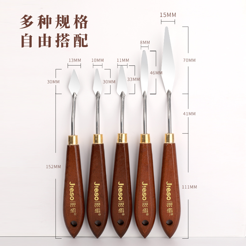 彩研油画棒刮刀套装油画刀美术专用软性油画棒工具不锈钢超弹性水粉铲子铲刀蜡笔画铲肌理调色刀小号尖头刮刀