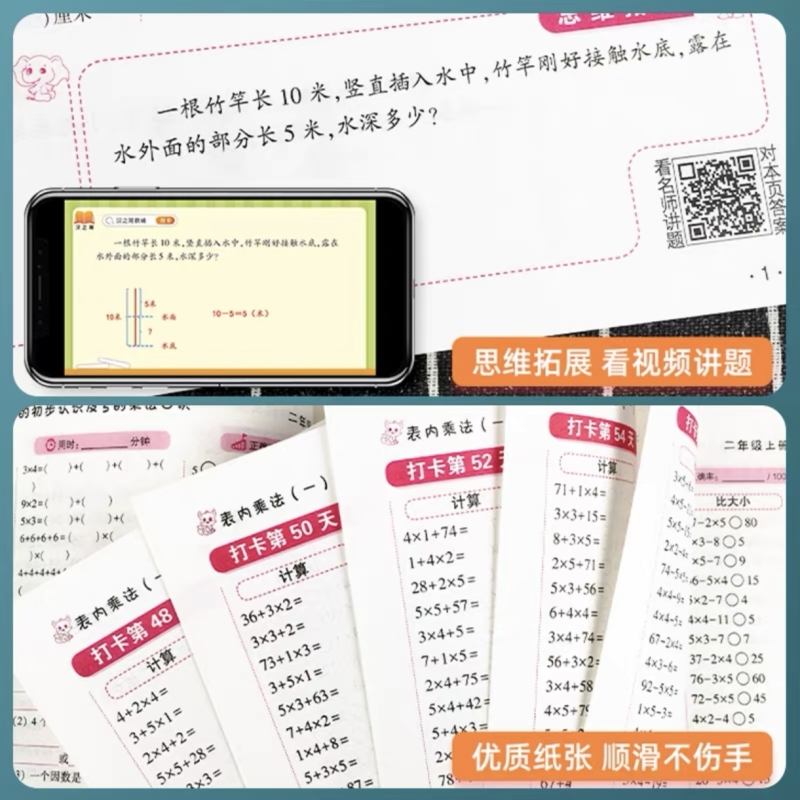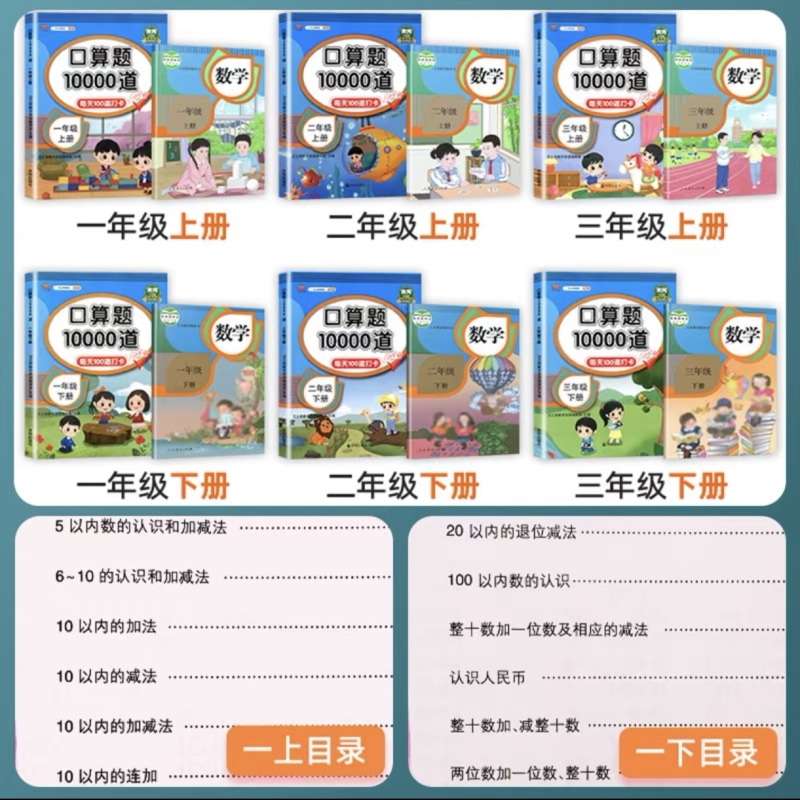 汉之简口算题卡天天练一年级二年级下册上册三四五六年级10000道每天一练小学数学计算每日100题20以内加减法练习册混合运算2024