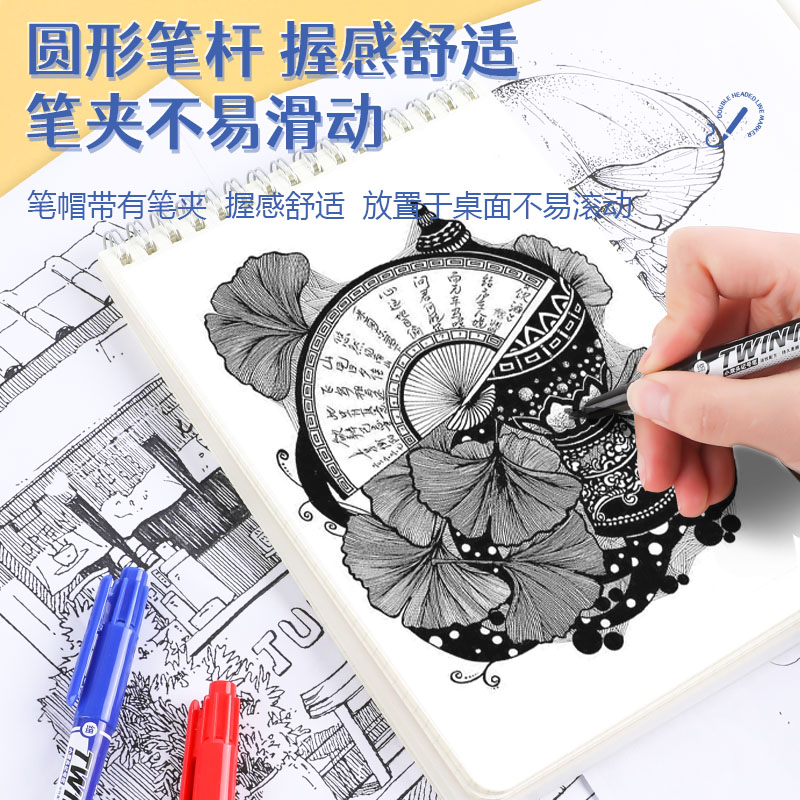 小双头记号笔勾线笔黑色油性速干防水防油不掉色大头马克笔工地美术专用儿童幼儿园小学生绘画描边粗细红蓝水