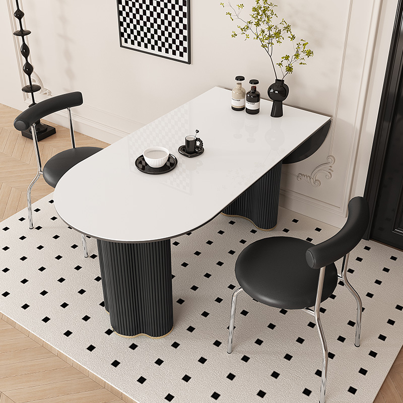 宫殿威仪岩板餐桌家用小户型法式奶油风黑色餐桌椭圆形饭桌可靠墙