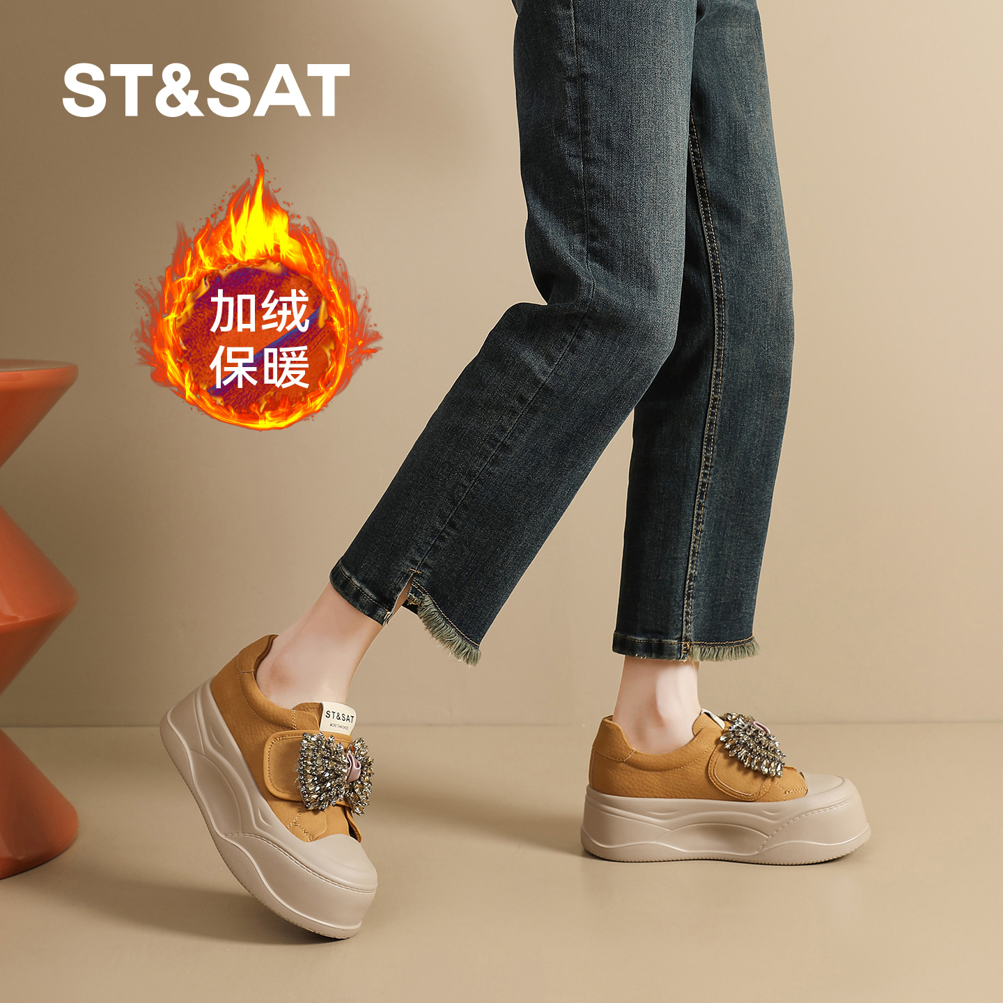星期六鞋子女鞋百搭新款秋冬加绒保暖学生板鞋显脚小厚底增高鞋子
