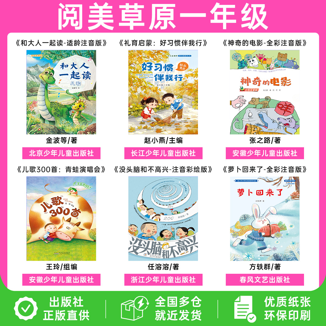 内蒙古阅美草原一年级和大人一起读适龄注音版儿歌300首青蛙演唱会没头脑和不高兴萝卜回来了礼育启蒙好习惯伴我行神奇的电影阅读