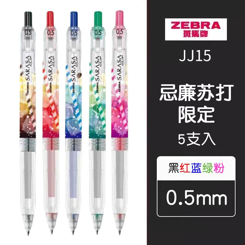 日本ZEBRA斑马JJ15忌威廉苏打限定中性笔0.5mm苏打水限量版按动水笔学生用黑色刷题笔手账标记彩色签字笔