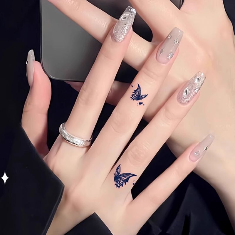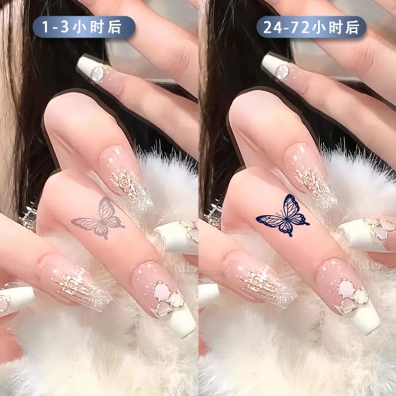 手指蝴蝶可爱小图案草本果汁纹身贴纸防水防搓不反光半永久维持