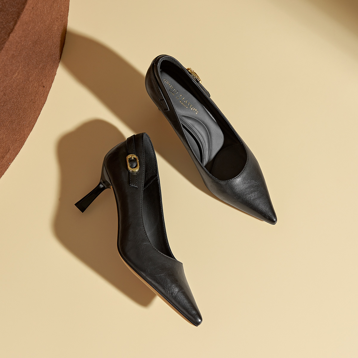 戈美其细跟黑色高跟鞋女气质高级不累脚2025新款配裙子的尖头单鞋
