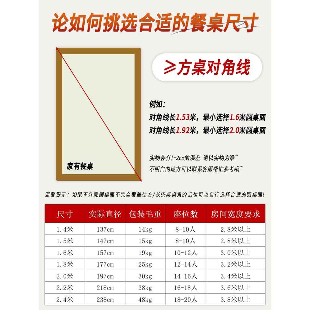 饰品配件折叠桌面家用15人20人实木圆形餐桌面板带转盘加厚杉木桌