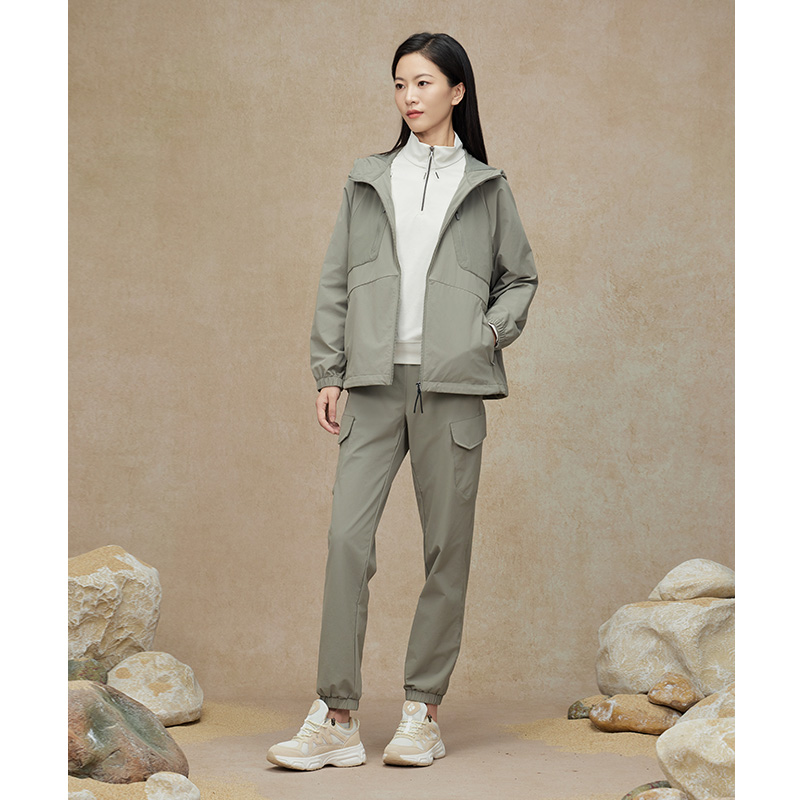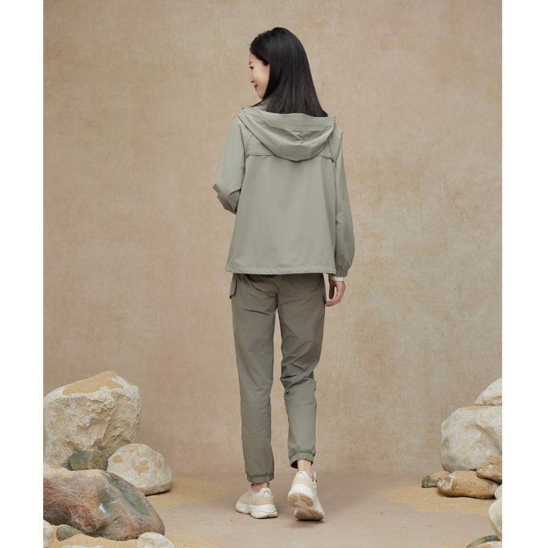 骆驼运动外套女秋季黑色连帽风衣外套户外登山防水防风薄绒夹克男