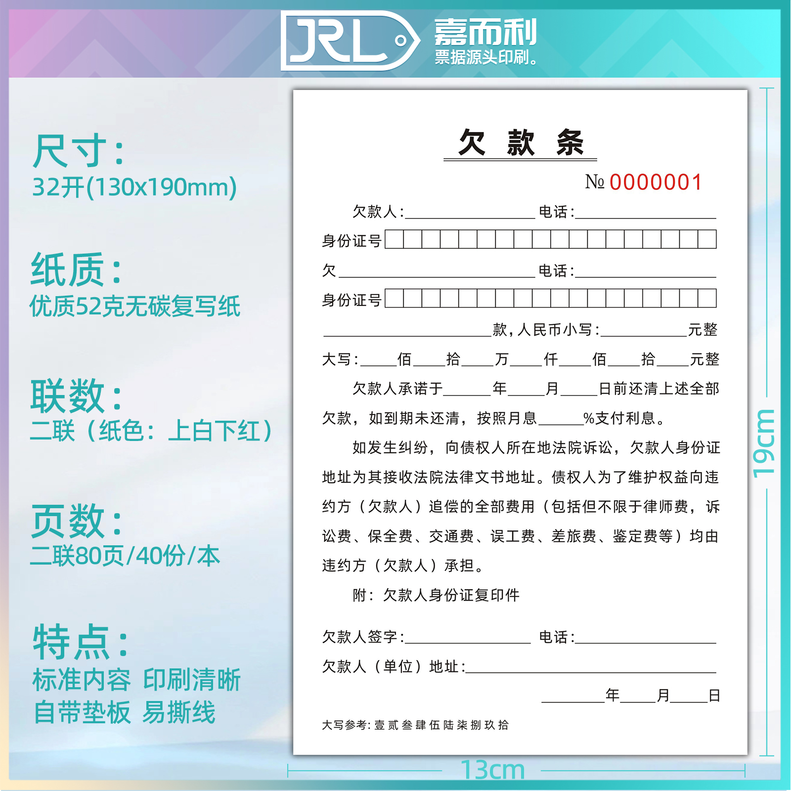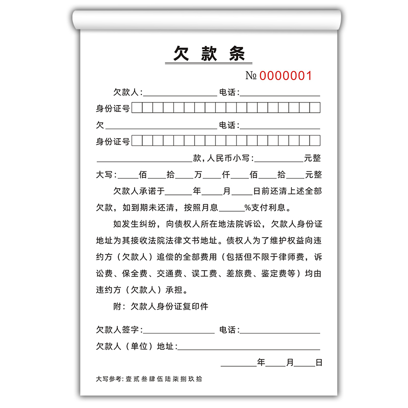 法律认可欠条本二联欠款单欠款条欠工程货款借条借款据账单可订做