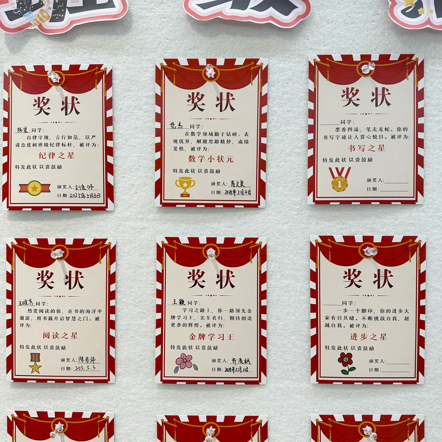 班级荣誉小奖状证书表扬信创意文化墙班主任管理神器老师激励学生学习阅读写作进步之星通用喜报卡片纸