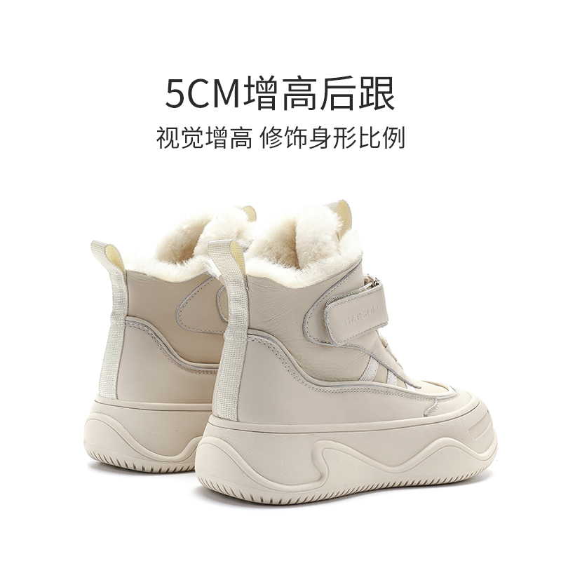哈森东北雪地靴冬季新款增高厚底皮毛一体加绒休闲女靴HWA230175