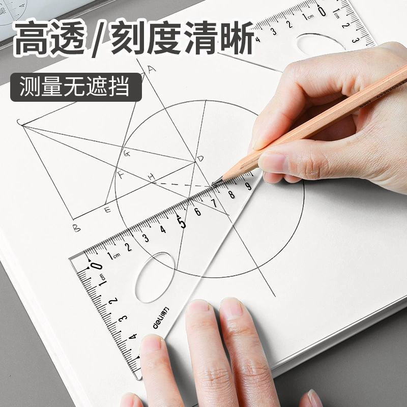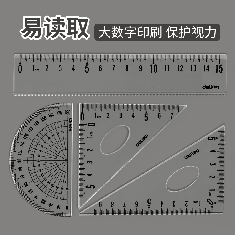 得力套尺尺子四件套三角尺15cm20cm直尺格尺量角器中小学生用考试推荐套装透明绘图套装几何工具软尺学生文具