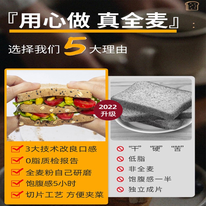奇亚籽黑全麦吐司面包片代餐饱腹低无蔗糖脂肪小零食小吃休闲食品