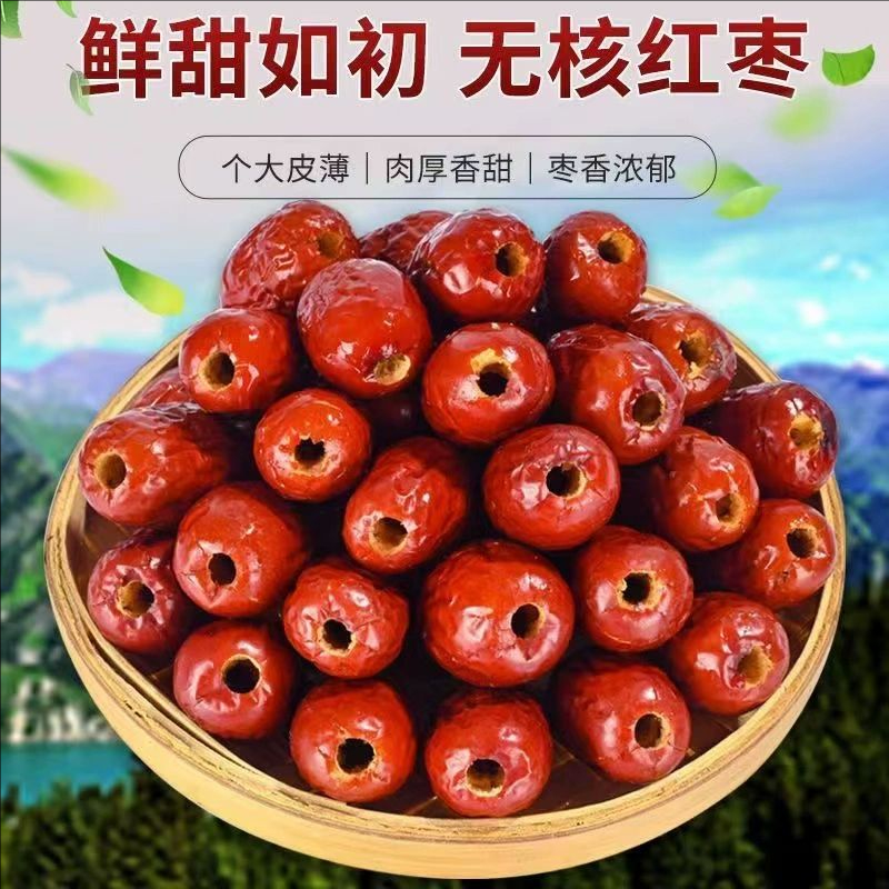 无核红枣新疆去核去皮若羌灰枣奶枣脱皮空心包粽子大红枣干货整箱