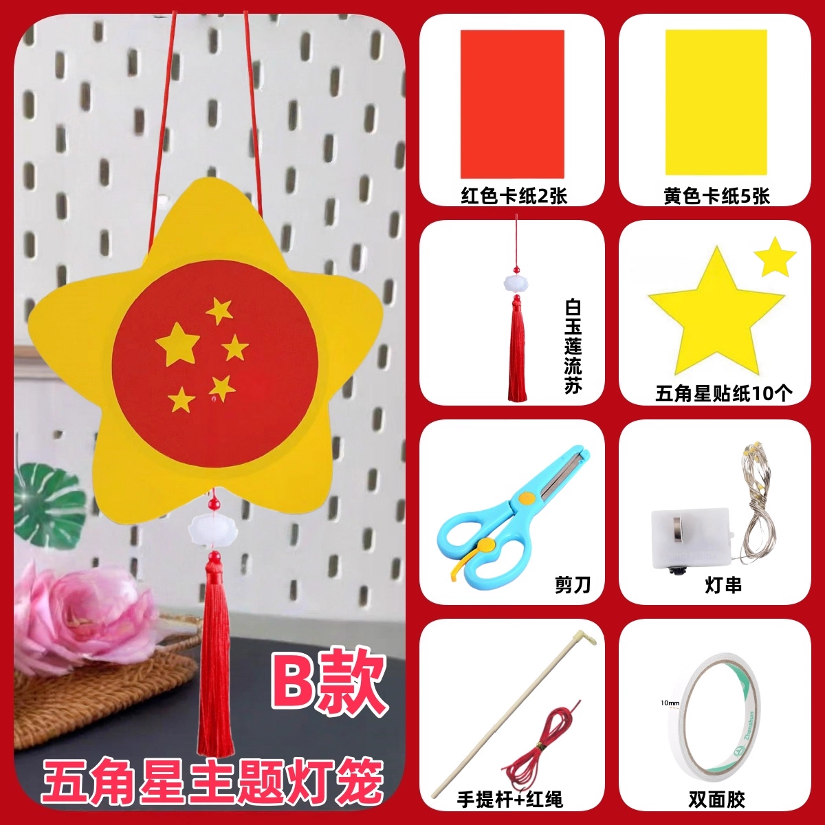 中秋国庆节灯笼创意手工制作材料包中秋佳节幼儿园小学生diy手工纸手提竹杆花灯发光灯笼配件挂饰线绳闪闪灯