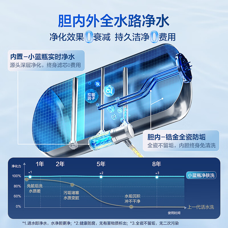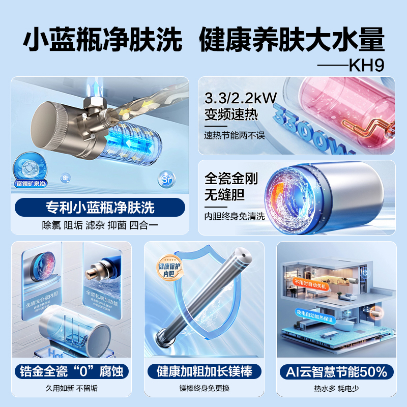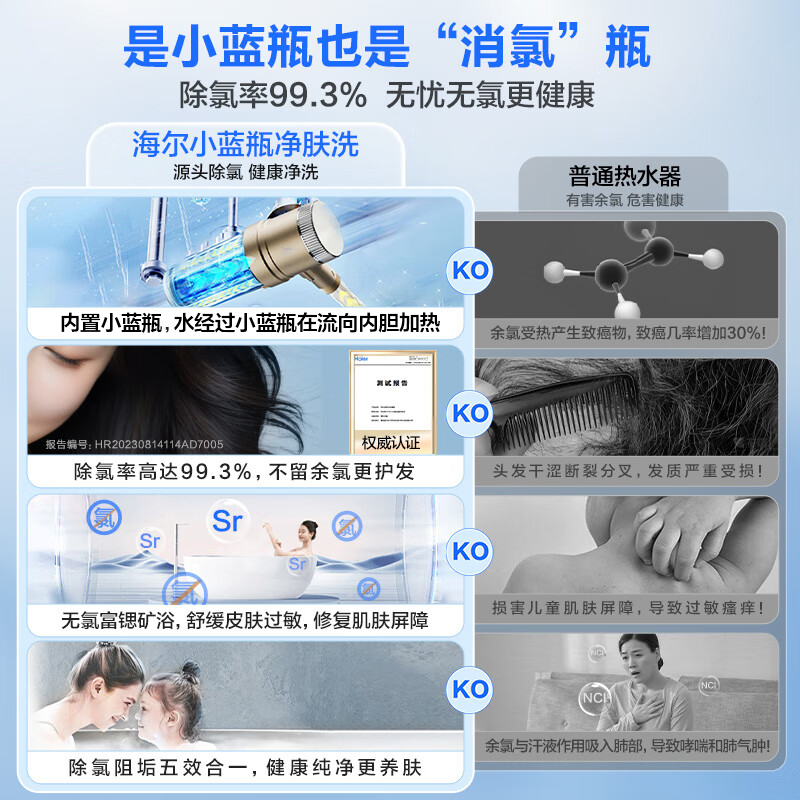 国补海尔电热水器家用60升洗澡统帅一级能效小蓝瓶除氯净水洗KH9