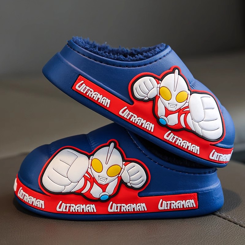 奥特曼儿童棉拖鞋秋冬季小孩男童居家室内宝宝防滑毛包跟棉鞋女孩