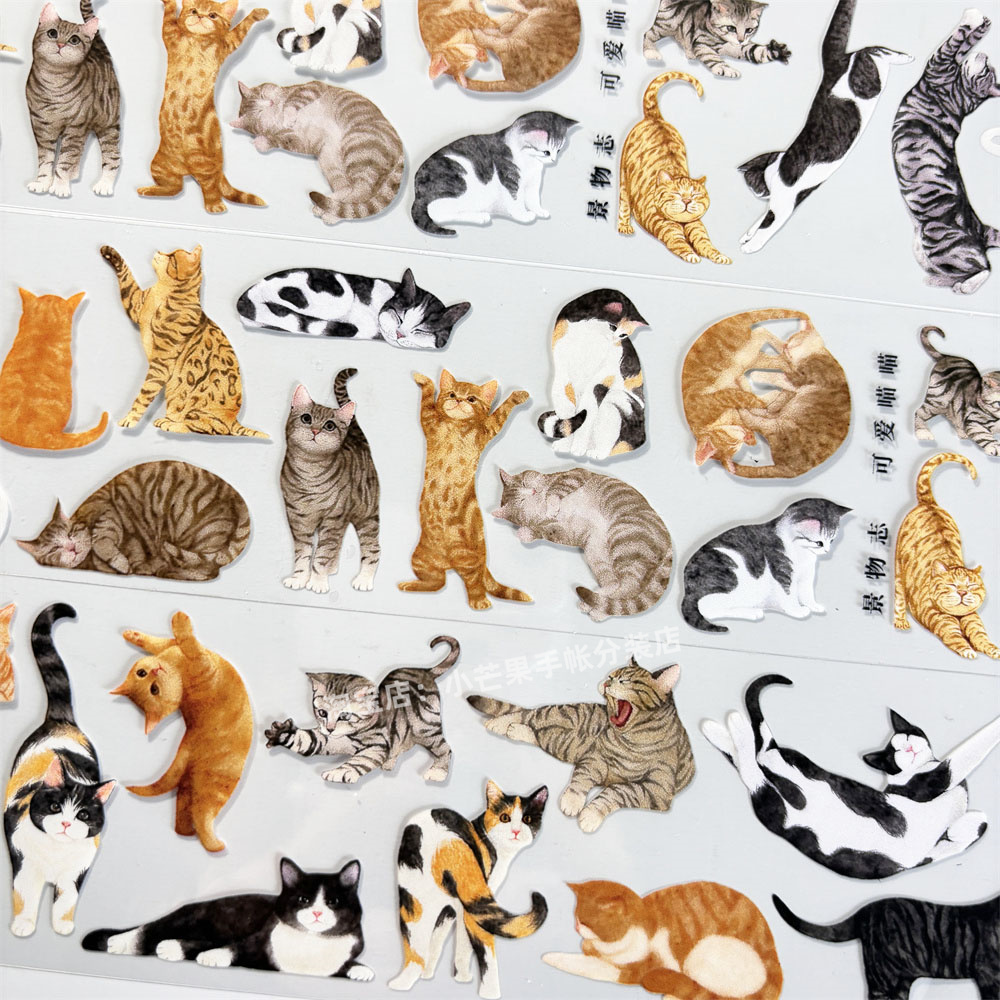 手帐分装胶带可爱喵喵景物志动物花纹古风PET素材账流麻diy贴纸