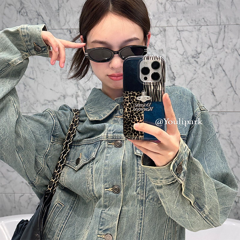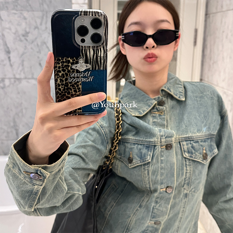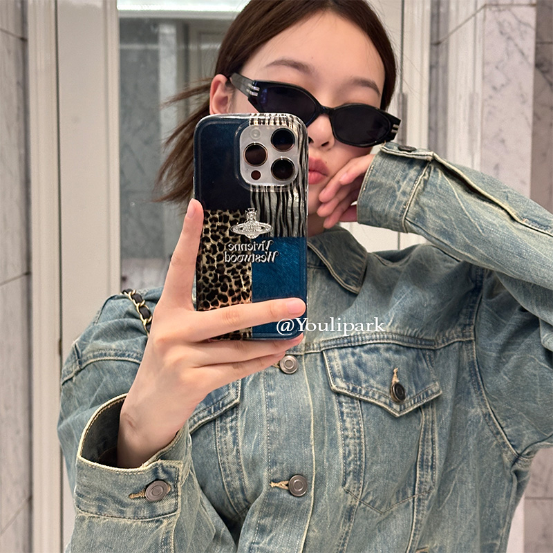 由里公园ins小众个性牛仔豹纹拼接立体星球15适用16pro苹果16ProMax手机壳iPhone16全包12新款14Promax软13女