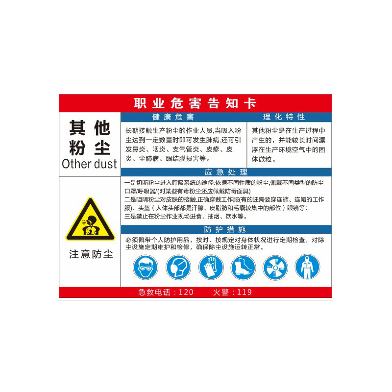 其他粉尘硼酸 片碱 氢氧化钙 氰化金钾 溶剂油墨 热辐射 手传振动 四氯化碳 酸碱 职业危害告知卡警示标识牌