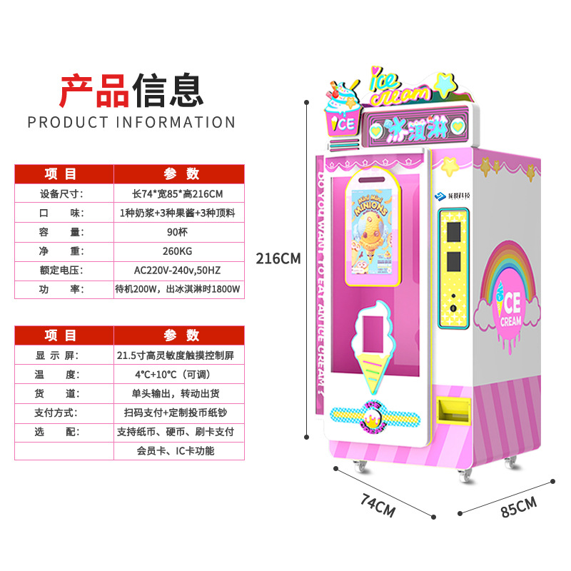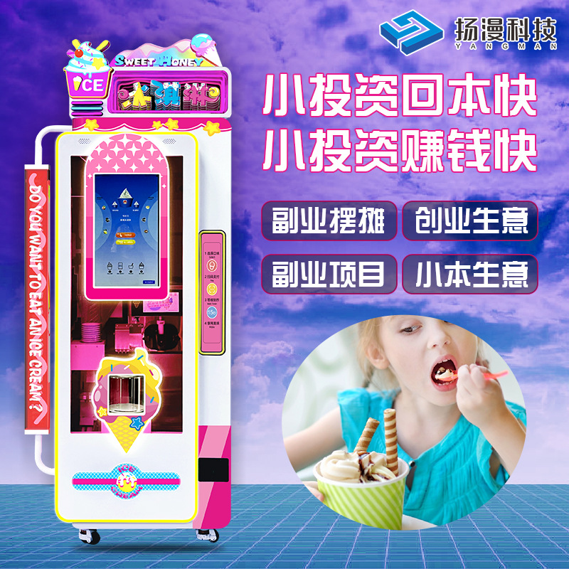 扬漫全自动冰淇淋机商场景区扫码24小时无人自助冰激凌售货机厂家