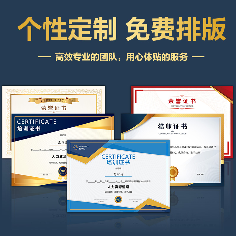 荣誉证书奖状定制烫金结业获奖培训结营比赛内芯内页定做制作聘书